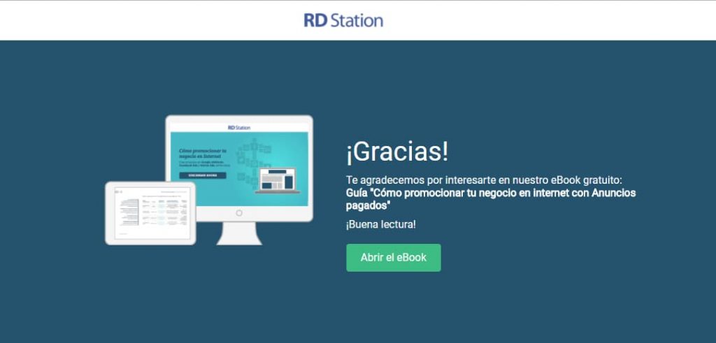 • Se compromete con el usuario y le anuncia que recibirá lo que prometió anteriormente, como puede ser un ebook, webinar, curso online, etc.